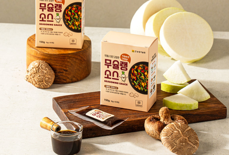 무 조미소스는 굴 소스를 대체할 다용도 식물성 조미소스로, 무 특유의 맛 성분을 농축한 ‘무 농축액’을 핵심 소재로 사용했다. 조리 활용도와 건강성을 모두 갖춘 식물성 기반 제품으로, 급성장 중인 채식·비건 시장 공략이 기대된다.