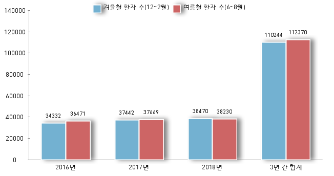 | ▲ 여름철과 겨울철의 안면신경마비 환자 통계 |