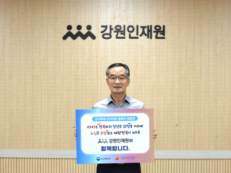 [강원도 세계타임즈=김민석 기자] 강원인재원(원장 김학철)은 5월 7일 ‘인구문제 인식개선 릴레이 캠페인’에 동참하였다. 이번 캠페인은 급격한 인구 감소에 대한 사회적 경각심을 높이고, 지방소멸 위기 대응을 위한 국민적 공감대를 확산하고자 보건복지부와 한국보건복지인재원이 공동으로 마련하였다.