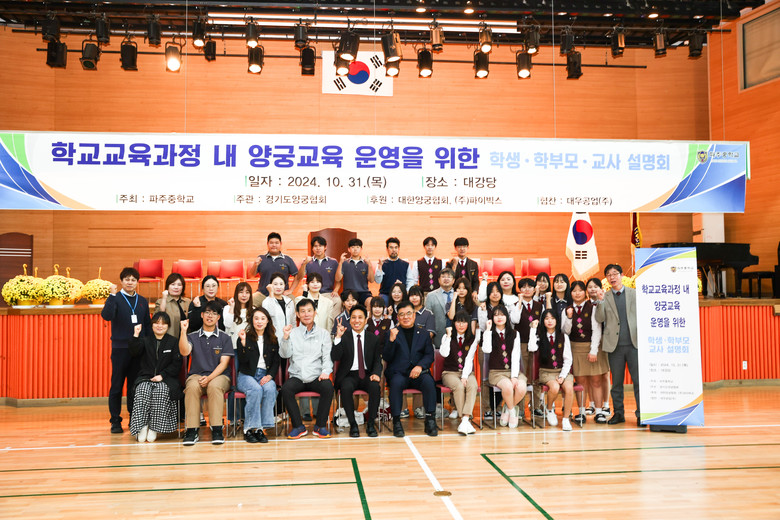 [파주시 세계타임즈=송민수 기자] 파주중학교는 2024년 10월 31일 학교교육과정 내 양궁 교육 실시를 위한 설명회를 개최하였다. 전교생 1인 3기(오케스트라, 1인 1 스포츠 활동, 수학·과학 중점교육) 교육을 통한 파주중만의 특화된 전인교육 실시를 위해 이번 행사를 개최하였다.