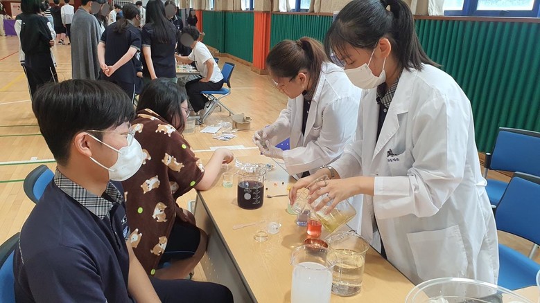 양배추 지시약 키링 만들기 체험에 참여한 2학년 송금주 학생은 “수소 이온 농도(pH)를 확인하는 실험을 교과서로만 접하다가 활동에 대입하여 직접 부스를 진행해보니, 과학적 흥미와 탐구 능력도 함께 기를 수 있는 좋은 시간이었다.”라고 소감을 밝혔다.