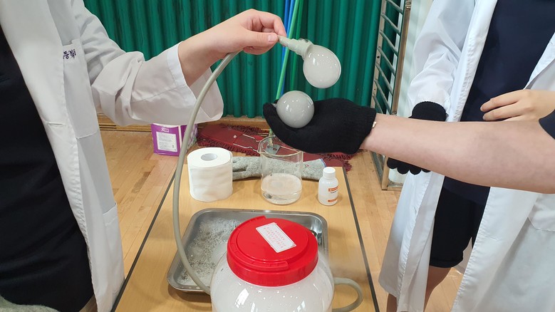과학동아리에서 운영한 전시와 실험, 체험 부스는 모두 19개다. 참가자들은 풍선 자동차, 드라이아이스 비눗방울, 액체 자석, 아쿠아 화학 정원, 양배추 지시약 키링 만들기, 지문 채취, 오호 만들기, 내진 설계, 자외선 칫솔 살균기, 모기 퇴치제 등 물리학, 화학, 지구과학, 생명과학 시간에 학습한 이론을 떠올리며 체험을 진행했다.