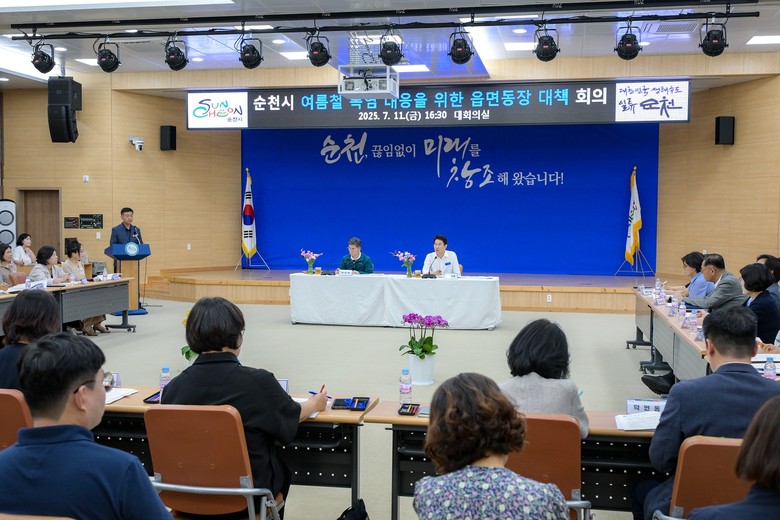 [순천시 세계타임즈=우덕현 기자] 순천시(시장 노관규)는 지난 11일 시청 대회의실에서 읍면동장을 대상으로 여름철 폭염 대응 상황 점검 및 대책 마련을 위한 회의를 개최했다고 밝혔다.