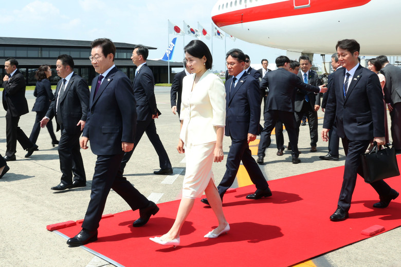 1박2일 일정으로 일본을 방문하는 이재명 대통령과 김혜경 여사가 23일 일본 도쿄 하네다공항에 도착하고 있다. 2025.8.23