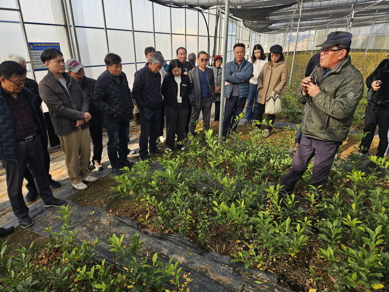 또한, 시범사업 현장 4개소를 직접 방문해 ▲유자 공정육묘 생산시스템 ▲이상기상 대응 유자 안전생산 기술 ▲국내 육성 품종 단감 ‘감풍’재배단지 조성 등 기술 적용성과 발전 가능성을 확인하고 의견을 나눴다.