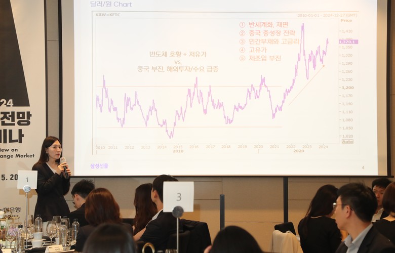 이번 세미나에서는 삼성선물 리서치센터 전승지 센터장이 강연자로 나와 주요 통화 환율 및 경제 전망을 제공하며 환 리스크 관리 수요가 있는 금융기관(FI) 고객들의 많은 관심을 받았다.