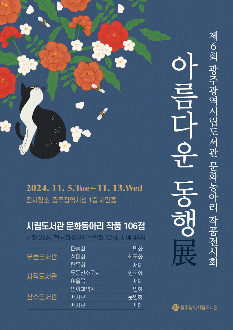 송경희 광주시립도서관장은 “‘아름다운 동행전’은 동아리 회원들이 주인공이 돼 그동안 노력한 결실을 선보이고, 시민과 공유하는 소통의 자리”라며 “이번 전시회에 많은 시민의 관심과 참여를 바란다”고 말했다.