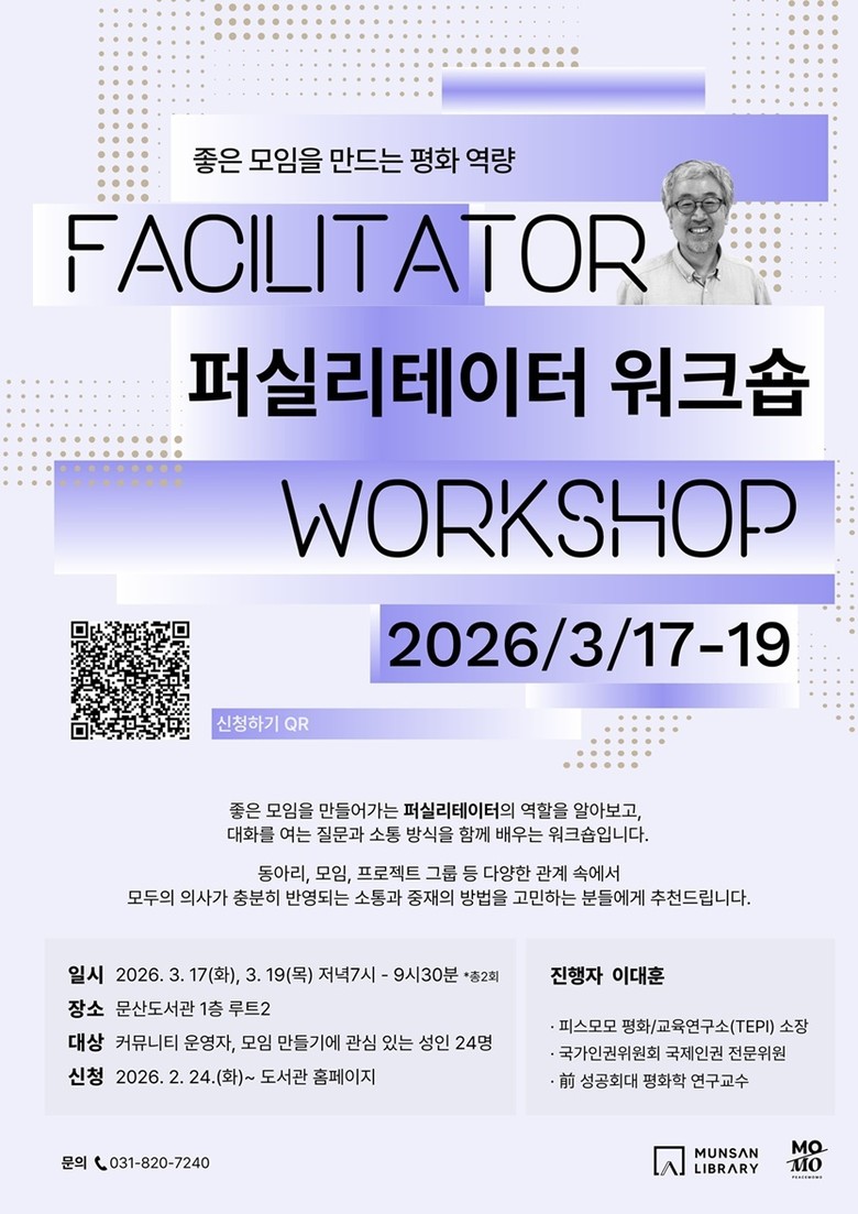[파주시 세계타임즈=송민수 기자] 파주시 문산도서관은 지역 공동체 형성을 촉진하기 위해 3월 17일부터 19일까지 ‘좋은 모임을 만드는 평화 역량’ 교육을 운영한다.