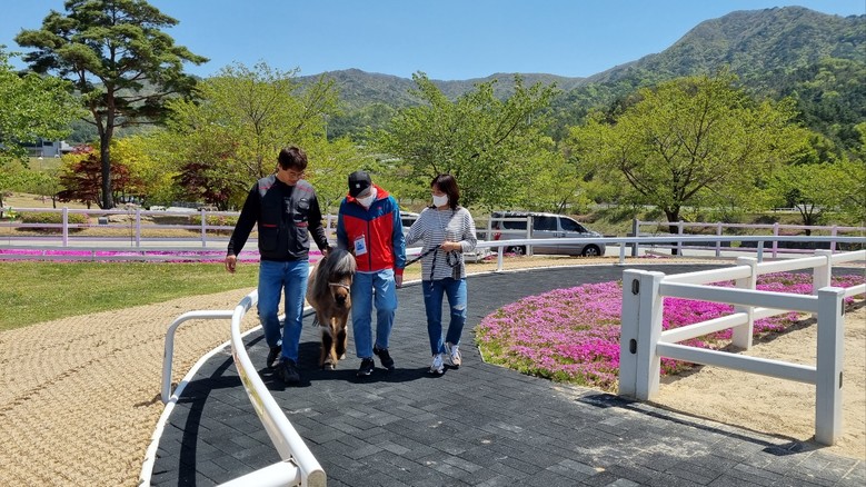 지난 4월 27일에는 2개의 참여기관(손수레주간보호센터, 더나눔주간보호센터)의 24명의 발달장애인과 교사들이 장수목장 치유농장 프로그램에 처음으로 참여했다. 참여자들은 ‘모형 마차투어’, ‘말 먹이주기’, ‘말 쓰다듬고 사진찍기’ 등 목장의 여유를 즐기고 말과 교감하는 시간을 가졌다.