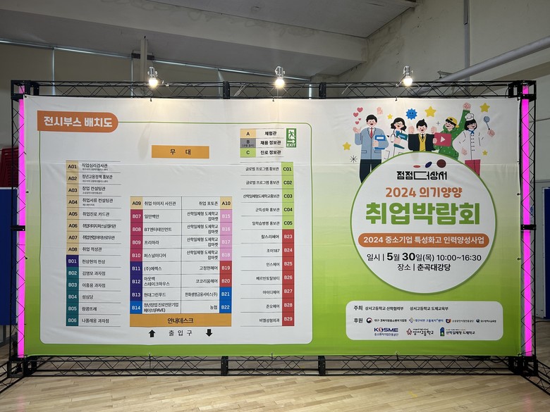 [대구 세계타임즈=한윤석 기자] 상서고등학교(교장 최우환)는 지난 5월 30일(목) 춘곡대강당에서 학생들의 진로 설계와 취업 전략 수립을 위한 ‘2024 점점더상서 의기양양 취업박람회'를 개최했다고 밝혔다.