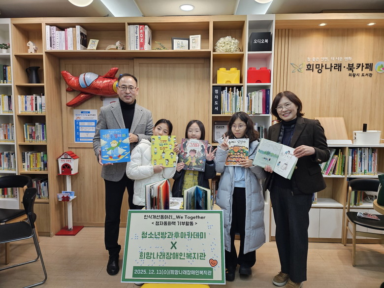 방과후아카데미 장애인식개선동아리 ‘We Together’ 청소년들은 1년 동안 점자를 학습하고 동화책 제작을 위한 다양한 활동을 진행해 왔으며, 이날 그 결과물을 지역사회에 기부하며 따뜻한 재능 나눔을 실천했다.