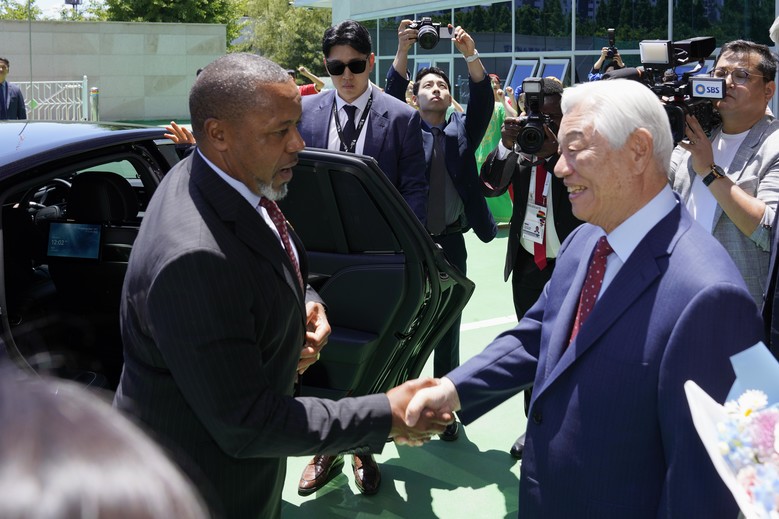 [세계타임즈 = 백진욱 기자] 3일 서울 서초구 양재동에 위치한 국제청소년연합(IYF) 센터에 살로스 칠리마 말라위 부통령이 방문해 환영을 받았다. '한-아프리카 정상회의' 참석차 한국을 찾은 칠리마 부통령은 박옥수 목사와 IYF 회원들의 환영을 받으며 IYF 센터에 도착했다. 이 자리에서 칠리마 부통령은 청소년 교육과 사회봉사 활동을 통한 국제협력을 논의했다.