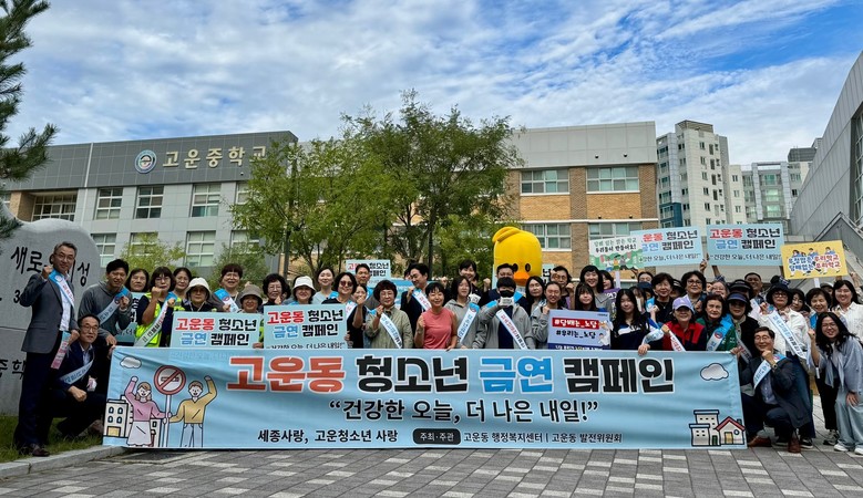 이날 캠페인에는 고운동 발전위원회를 비롯해 학교, 보건소, 금융기관, 유관단체 관계자 등 100여 명이 참여했다.