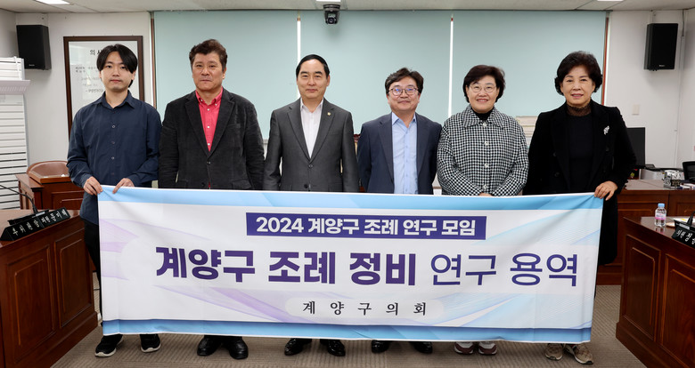 [계양구 세계타임즈=심하린 기자] 인천광역시 계양구의회(의장 신정숙) 의원연구단체인‘계양구 조례 정비 연구 모임’(대표의원 조덕제)은 지난 28일 계양구의회 5층 세미나실에서 계양구 조례 정비 연구 용역 중간보고회를 개최했다.