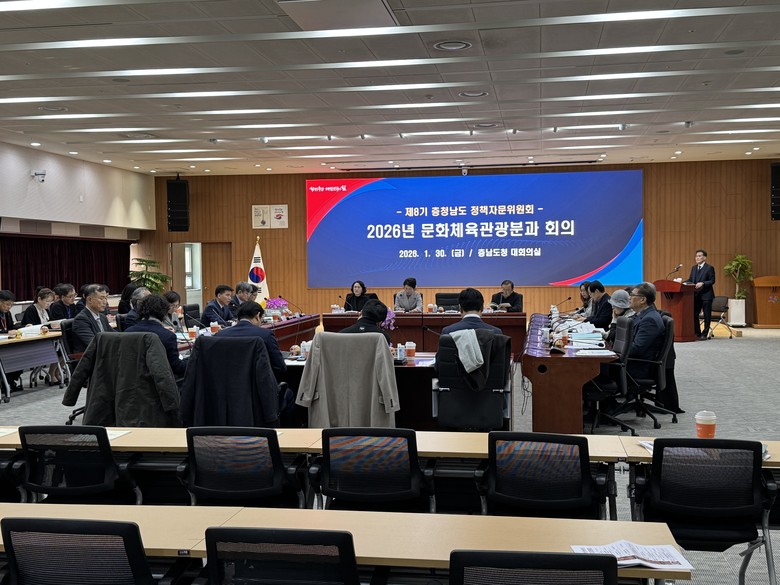 [충남 세계타임즈=이현진 기자] 충남도는 30일 문화·체육·관광 분야 정책의 완성도를 높이기 위한 ‘2026년 제1차 문화체육관광분과 정책자문위원회 회의’를 개최했다.