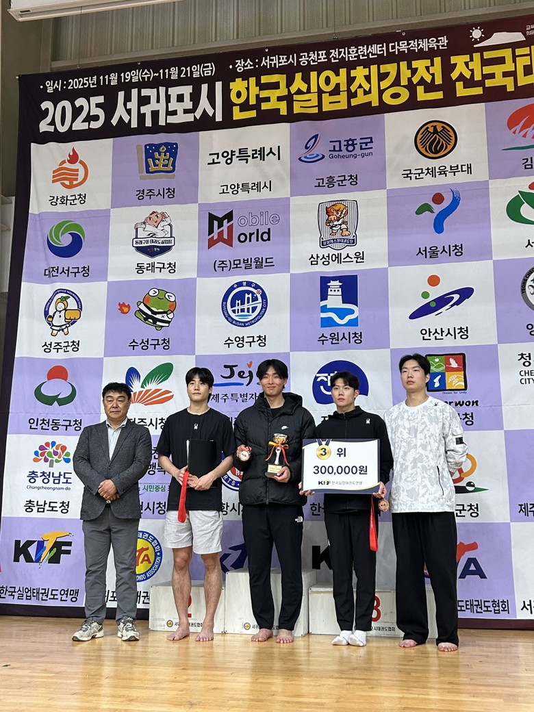 [고흥군 세계타임즈=우덕현 기자] 고흥군(군수 공영민)은 2025 한국실업최강전 태권도대회에 참가한 고흥군청 태권도팀이 남자 3인조와 5인조 단체전에서 각각 동메달을 획득했다고 밝혔다.
