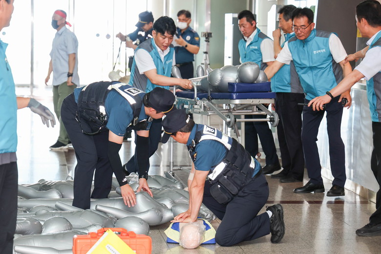 세 기관의 68명이 투입된 이번 훈련은 기상이변, 경마사고 등으로 인해 많은 인파가 몰리는 상황을 가정하고 기관별 역할과 단계별 대응방안을 직접 시연하는 방식으로 진행됐다. 사고 발생 시 한국마사회는 상황전파, 고객안내 등 안전 매뉴얼에 입각한 빠른 초기대응을 선보였다. 이어서 긴급 출동한 과천경찰서 대원들은 압사사고를 대비한 초동조치에 나서는 등 현장의 안전을 다각도로 살폈다. 마지막으로 과천소방서 대원들은 사고현장의 규모를 빠르게 파악하고 추가 구조대 지원을 요청했다. 이와 동시에 응급환자의 신속한 구조와 이송임무까지 담당했다.