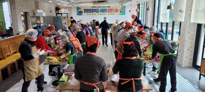| ▲ 지난해 본량초 학생들이 학교텃밭에서 직접 기른 배추, 무 등을 수확해 마을 커뮤니티(더하기센터)의 협조를 얻어 김장을 하고 나눔을 실천하고 있다. |
