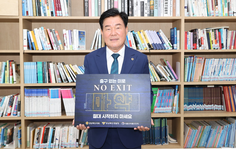 [경북 세계타임즈=한성국 기자] 경북도의회 교육위원회 윤승오 위원장(영천)은 6월 2일, 경찰청 주관의‘마약 범죄 예방 릴레이 캠페인’에 참여해 인증샷을 SNS에 게재하고 마약 퇴치를 위한 홍보에 나섰다.