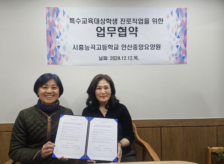 시흥능곡고등학교는 지난 2024년 12월 12일 안산중앙요양원(대표 배수정)과 업무협약을 통해 특수교육대상학생의 안전하고 인권이 보장된 현장실습운영이 가능하게 되었다. 이번 현장실습으로 시흥능곡고등학교 특수교육대상학생들은 요양보호사 직무를 직접 체험하는 기회를 가지게 되었다.