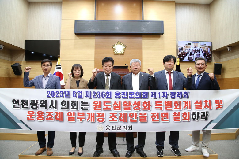 해당 결의안은 ▲현 영흥화력발전소 도서개발계정 및 석탄화력발전소 주변지역의 안전.방재대책 및 환경개선 사업을 유지할 것과 ▲2023년 6월 9일 상임위원회에서 통과된 『인천광역시 원도심활성화 특별회계 설치 및 운용조례 일부개정 조례안』을 전면 철회할 것을 요구하는 내용을 포함하고 있다.