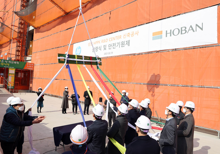 [세계타임즈 심귀영 기자]호반건설이 ‘HP 프린팅 코리아 R&D센터’의 상량식(上樑式)을 개최하고, 후속 마감공사의 성공적인 완수를 기원했다.