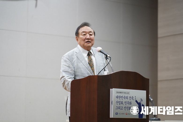 '정대철' 헌정회장이 11일 오후 서울 동작구 김영삼도서관에서 열린 김영삼대통령10주기 기념 세미나시리즈 ‘대한민국의 건국, 산업화, 민주화 그리고 선진화’ 2차 세미나에서 인사말을 하고 있다.