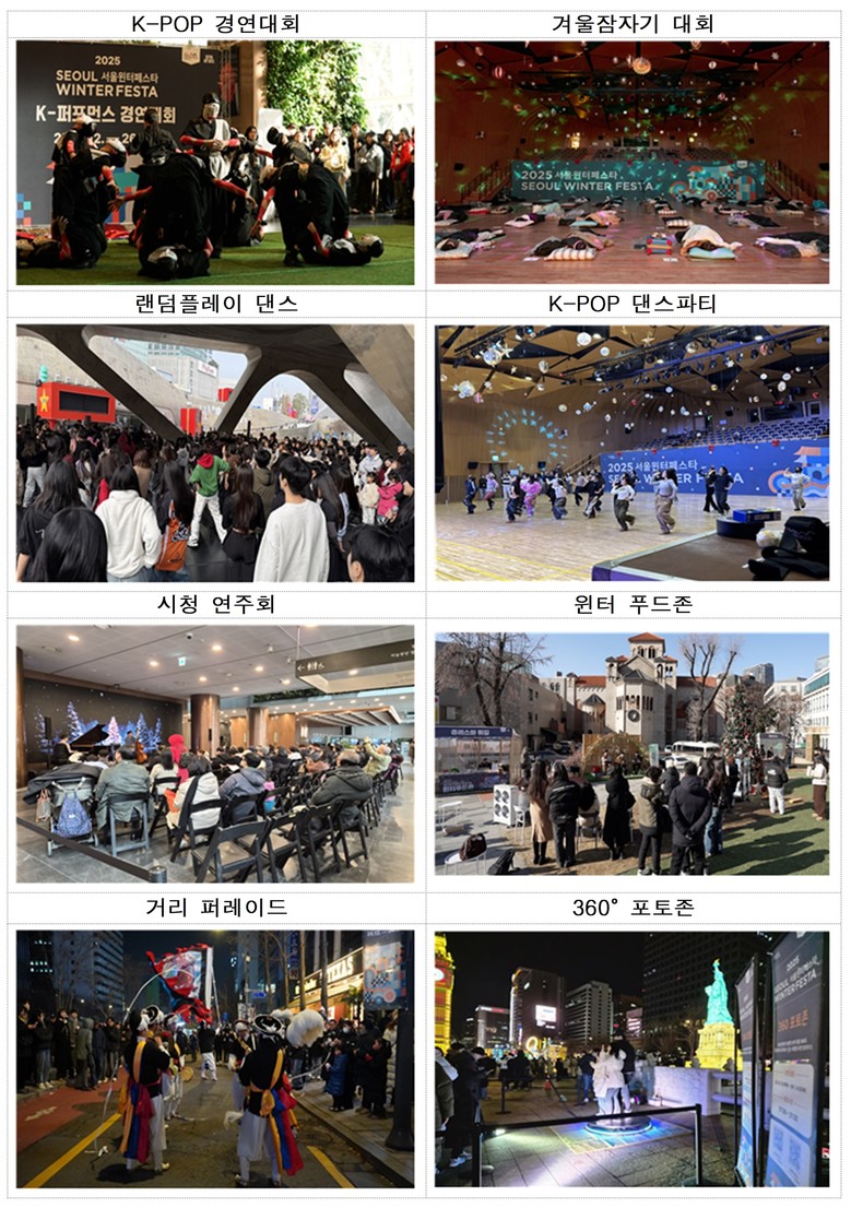 특히 시민이 주인공이 되어 즐기는 참여형 이색 콘텐츠가 열리면서 재미와 열기를 더했다. 지난달 25일(목) 서울시청에서 치러진 ‘K-퍼포먼스 경연대회’ 결선을 시작으로, 2025년 마지막 주말이었던 27일(토) ‘겨울잠 자기 대회’, 28일(일) ‘K-POP 댄스파티’와 ‘랜덤 플레이 댄스’가 연이어 개최되며 현장은 시민들의 뜨거운 열기로 가득 찼다.