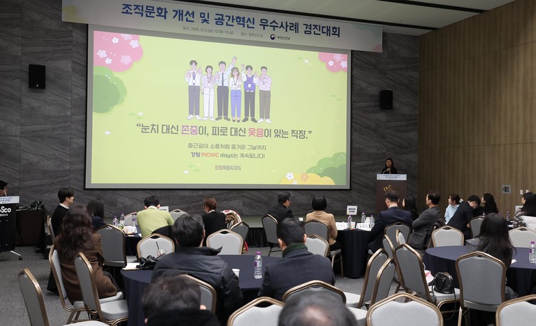 [강원도 세계타임즈=김민석 기자] 강원특별자치도는 12월 5일 행정안전부가 주관한 ‘2025 조직문화 개선 우수사례 경진대회’에서 ‘우수상’을 수상했다. 광역지자체 중 1위이자 지난해에 이어 2년 연속 우수기관으로 선정되는 성과를 거뒀다.