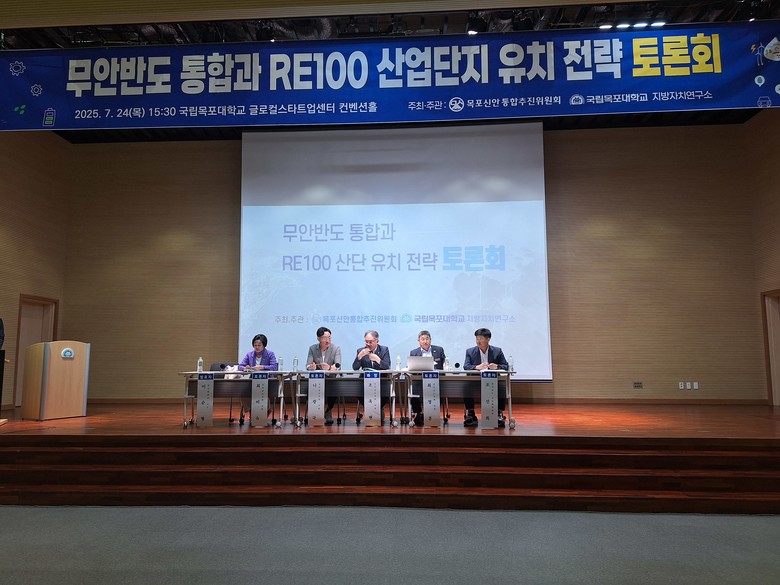 동신대학교 이순형 교수의 ‘무안반도 통합과 RE100 산단 유치 전략’ 발제를 시작으로 지정토론과 질의응답 순으로 진행됐다.
