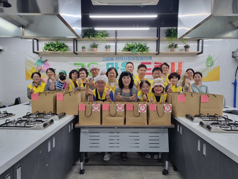 고운동지사협 위원들은 고운동 남측 행복누림터 요리교실에서 아이들이 좋아하는 닭강정과 소떡소떡 등 간식을 직접 조리하고 각 가정으로 전달, 안부를 확인했다.