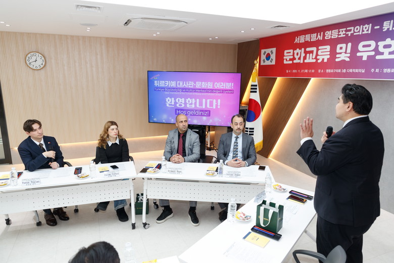 [영등포구 세계타임즈=이장성 기자] 서울특별시 영등포구의회 국민의힘 박현우 의원(여의동·신길1동)은 11월 27일(목) 12:30 구의회 3층 다목적회의실에서 이재명 대통령의 튀르키예 국빈방문을 기점으로 지방정부의 ‘공공외교’, ‘문화외교’, ‘보훈외교’ 차원에서 튀르키예 문화교류 및 우호증진을 위한 간담회를 개최했다.