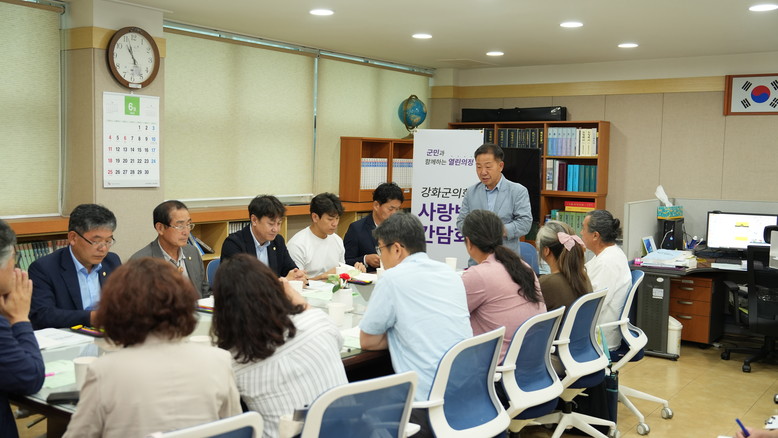 강화도시민연대 김순래 운영위원을 비롯한 관계자들과 군의원 전원이 참석한 가운데 간담회를 진행했다.