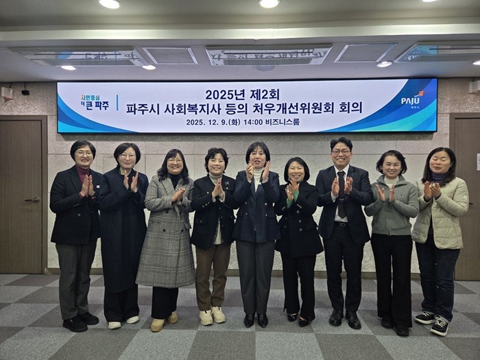 앞서 파주시는 지난 4월 제1회 위원회를 시작으로, 처우개선 종합계획 연구용역 착수·중간·최종 보고회를 연이어 개최하며 종사자 처우 개선의 기반을 다져 왔다. 1차 회의에서는 연구용역 추진계획과 실태조사 방향을 논의하며 처우개선 정책 수립의 방향이 적극 반영되는 계기가 되었다.