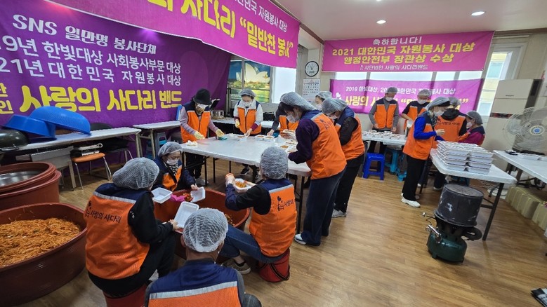 이날 봉사에는 대덕구 중리동에 위치한 사무실에서 유희자 단장을 비롯한 자원봉사자 20명이 오전 9시 30분부터 무생채와 마늘쫑무침을 맛있게 만들었다.