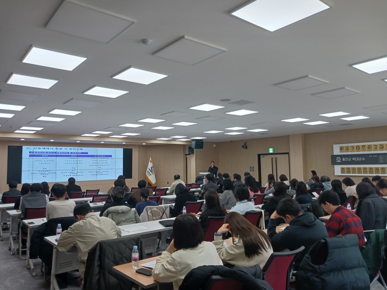 이번 교육은 근로기준법 등 개별 근로관계 실무업무 등을 집중적으로 교육해 업무 담당자의 전문성을 높이기 위해 마련됐으며, 박동학 노무사를 초빙해 강의를 진행했다.