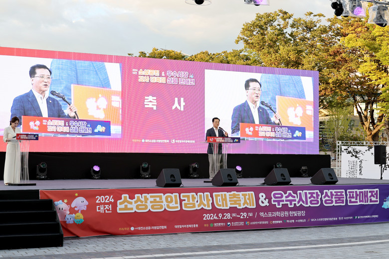 [대전 세계타임즈=이채봉 기자] 대전시의회 조원휘 의장은 지난 28일 엑스포 한빛광장에서 개최된 ‘2024 소상공인 감사 대축제’에 참석해 지역경제를 지탱하는 소상공인에게 감사를 전하고, “대전시의회는 소상공인 육성과 지원을 위해 관련 조례 개정과 도시형소공인 조례를 발의한 바 있다”며, “앞으로도 소상공인 지원을 위한 노력을 아끼지 않을 것”이라고 말했다.