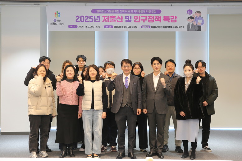 [의왕시 세계타임즈=송민수 기자] 의왕도시공사가 12월 2일, 포일어울림센터 강당에서 공사와 의왕시청소년재단 전임직원을 대상으로‘저출산 및 인구정책 특강’을 실시했다.