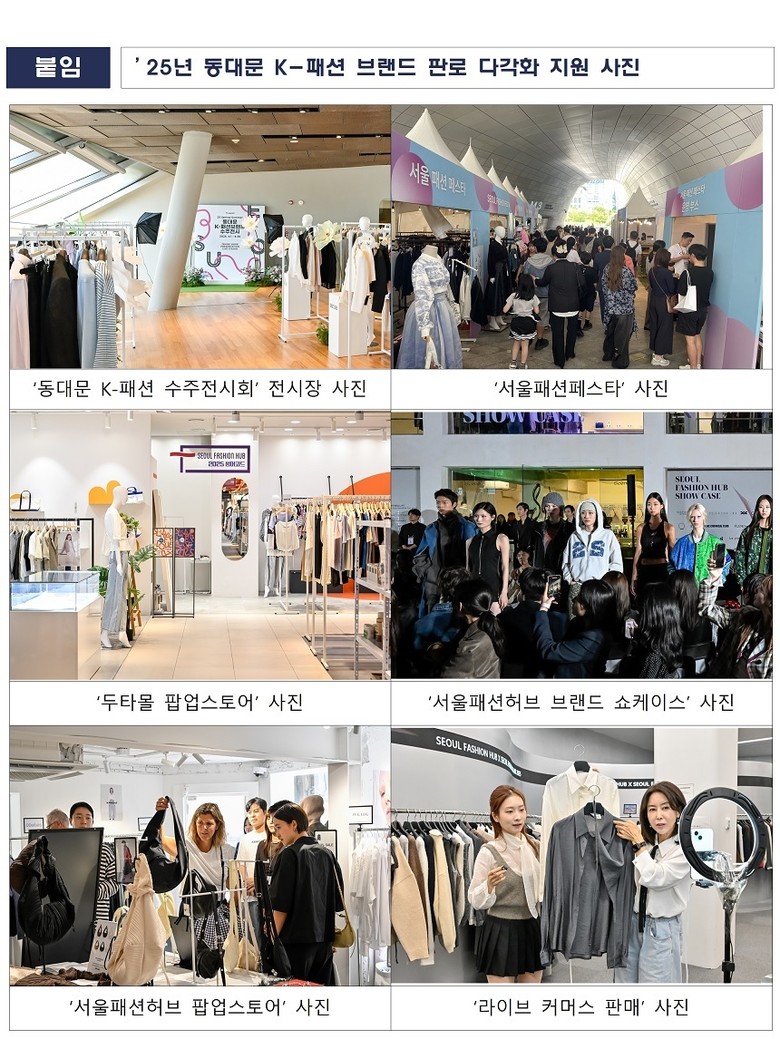 시는 지난해 우수한 디자인 역량을 갖춘 동대문 상인 브랜드와 신진 디자이너 브랜드 90개사를 선정해 연간 ‘브랜드 성장 지원 프로그램’을 운영했으며, ▴B2B 수주 전시회(4월, 11월) ▴서울패션페스타(9월, DDP 미래로) ▴성수·한남 릴레이 팝업스토어(9~11월) ▴라이브커머스 판매 지원 등 온・오프라인 전방위 판로를 연계 지원한 결과, 총 42억 원 이상의 매출 성과를 거둔 바 있다.