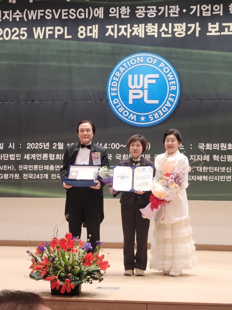 [남동구 세계타임즈=심하린 기자] 남동구의회 반미선 의원(구월2동, 간석2‧3동/더불어민주당)은 2월19일 국회의원회관 대회의실에서 세계청년리더총연맹(WFPL)이 주관하는 ‘2025 WFPL 8대 지자체 혁신평가’에서 지방자치 혁신의 모범 사례로 인정받아 대상을 수상했다.