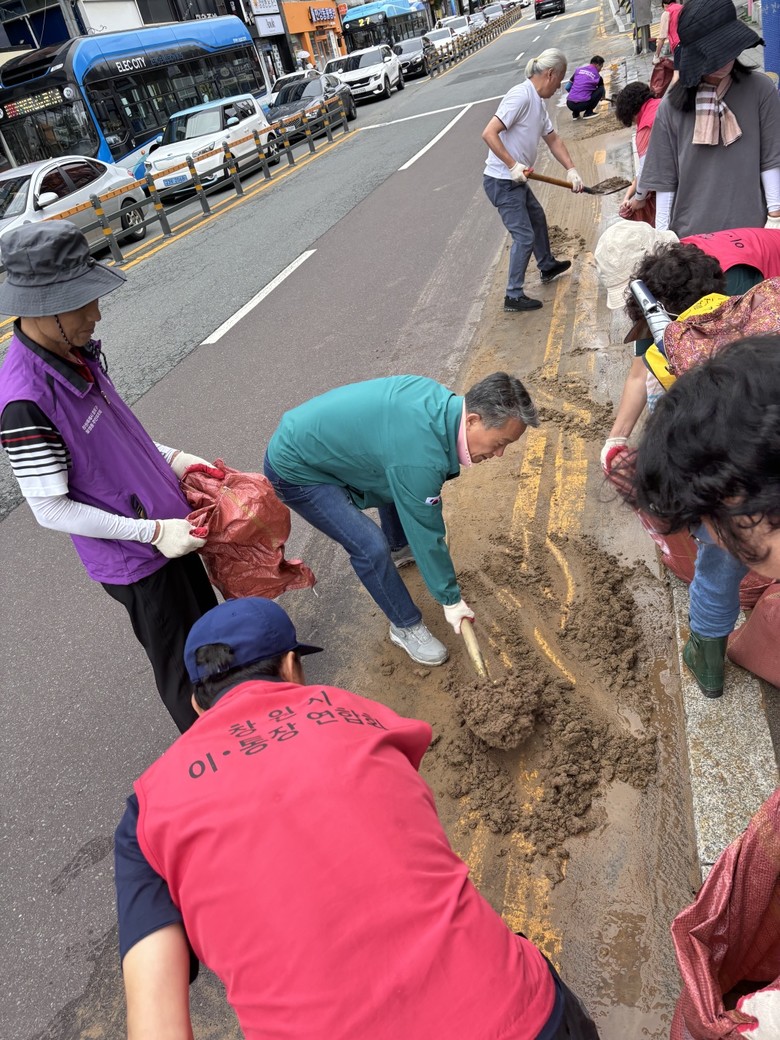 [세계타임즈]최성룡기자 = 창원특례시 마산합포구 월영동행정복지센터(동장 오성석)와 주민자치회(회장 김종식), 자생단체협의회, 통우회(회장 정선숙)는 2024년 9월 22일(일) 혹우 피해로 인하여 관내 월영남로, 가포로, 댓거리 상가지역 등 주민자치회 위원과 자생단체 회원 130여명과 창원시의회 정길상 시의원, 전홍표 시의원과 함께 배수로 주변 쓰레기 및 퇴적물 수거, 상가지역 도로변 환경정비 및 잡초를 제거하였다,