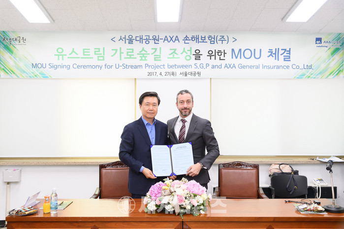 [세계타임즈 김장수 기자]4월28일,악사손해보험은5월가정의달을맞아서울대공원과‘가로숲길조성업무제휴협약’을체결하고식재행사를27일에진행했다고밝혔다. 본행사는녹지조성, 및테마숲길조성, 쉼터개선을통해서울대공원이용시민들에게보다안전하고쾌적한보행환경을조성하는‘유-스트림(U-Stream)’프로젝트의일환이다. 그간어린이교통안전캠페인을추진해온악사손해보험은어린이들을위한안전한보행로조성이라는취지에공감해본행사에동참하게되었다.
