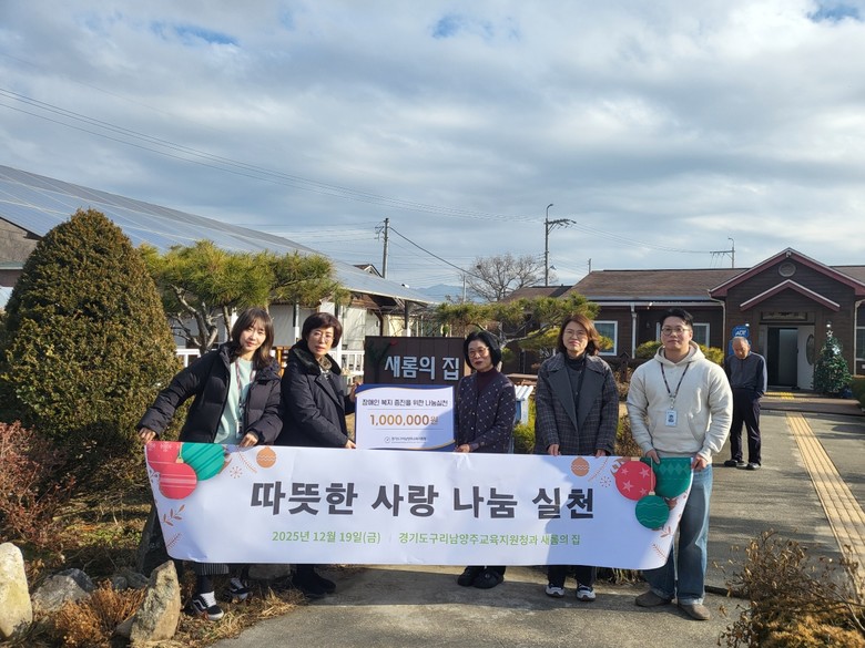 [남양주시 세계타임즈=송민수 기자] 경기도구리남양주교육지원청(교육장 서은경)은 12월 19일 오후, 남양주시에 위치한 장애인복지시설 ‘새롬의 집’을 방문해 청렴 우수사례 경진대회 최우수상 상금 100만 원 전액을 기부하며 나눔의 뜻을 전했다.