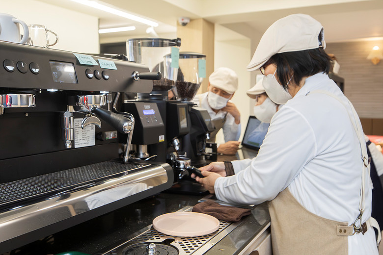 | ▲ ‘용왕산 숲속카페’에서 음료를 제조하고 있는 일자리사업 어르신 |