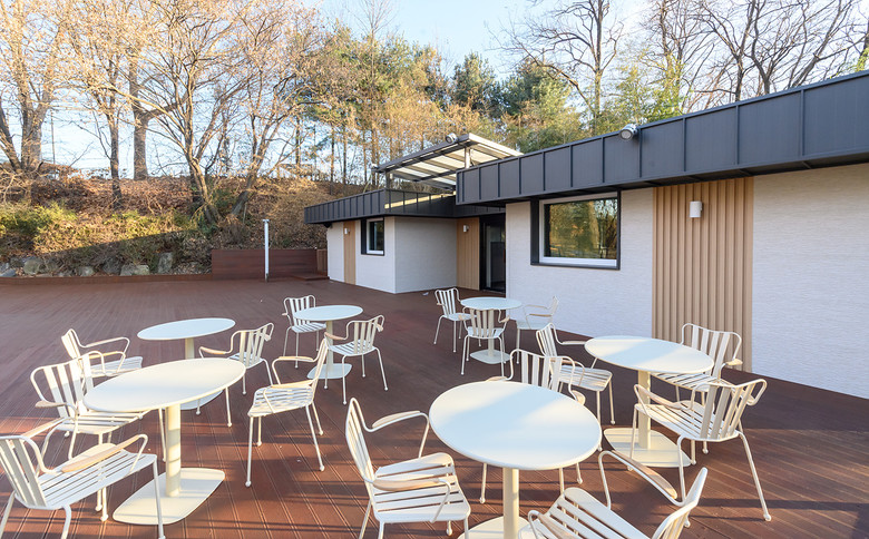 내부공간 전반은 원목을 중심으로 차분하게 연출해 자연과 조화를 이루는 아늑한 쉼터로 완성했으며, 실내외를 잇는 구조를 통해 계절과 날씨 변화에 따른 자연경관을 감상할 수 있도록 했다.