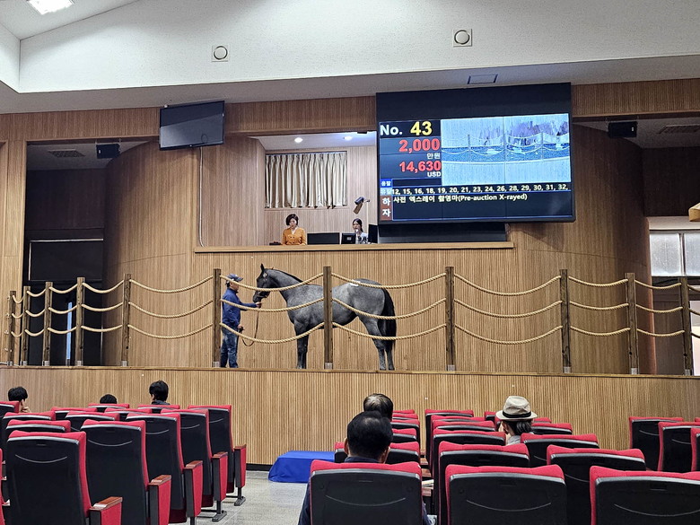 [세계타임즈 = 송민수 기자] 지난 24일(화), 한국마사회(회장 정기환) 제주목장에 위치한 한국경주마생산자협회 경매장에서 올해 첫 1세 경주마 경매가 개최됐다.