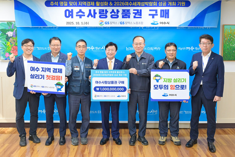 [여수시 세계타임즈=우덕현 기자] 여수시(시장 정기명)는 GS칼텍스가 추석 명절을 맞아 ‘여수사랑상품권 10억 원’을 구매해 지역경제 활성화와 2026여수세계섬박람회 성공 개최를 기원하며 지역 소상공인과의 상생 행보를 이어가고 있다고 밝혔다.