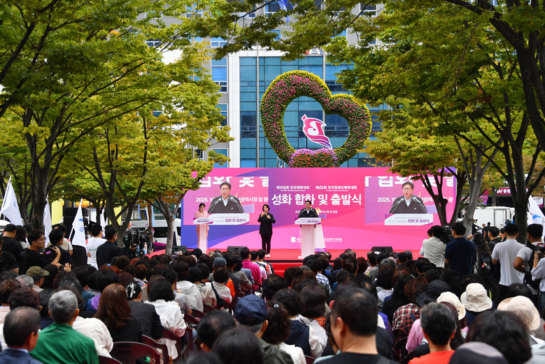 ◈ ▲성화 합화 ▲성화 봉송 첫 주자 인계 ▲축하공연 등 시민 200여 명과 함께 체전 시작을 알리는 불꽃 올려 [세계타임즈=부산 이용우 기자] 부산시(시장 박형준)는 오늘(13일) 오전 10시 시청 시민광장에서 「제106회 전국체육대회」와 「제45회 전국장애인체육대회」의 성공 개최를 기원하는 성화 합화 및 출발식을 개최한다고 밝혔다.