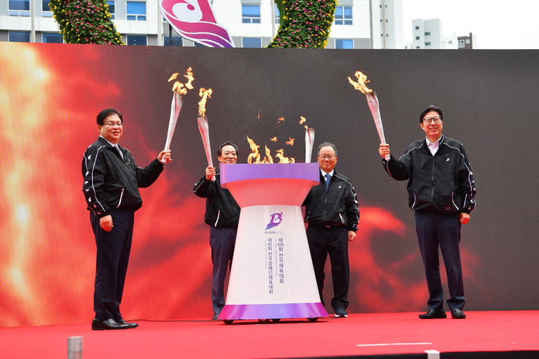 이번 행사에서는 지난 9월 25일부터 10월 3일까지 ▲금정산 고당봉(희망의 불) ▲유엔(UN)평화공원(평화의 불) ▲가덕도 연대봉(비상의 불) ▲강화도 마니산(화합의 불) 등 4곳에서 채화된 불꽃을 하나의 불꽃으로 합화 후, 성화 봉송의 첫 출발을 하게 된다.