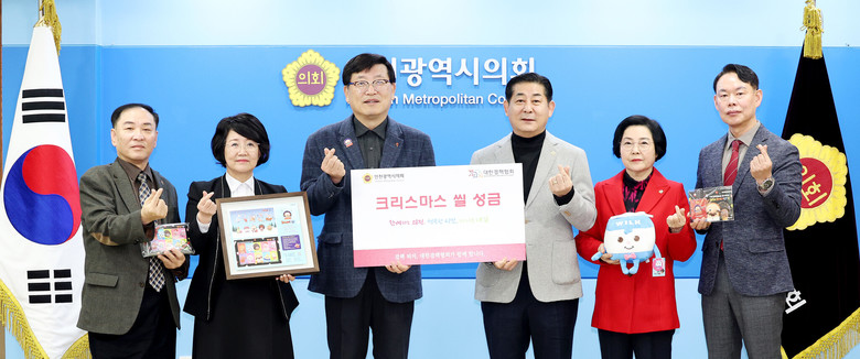 인천시의회는 2일 의회 접견실에서 정해권 의장을 비롯해 이선옥 제1부의장, 임춘원 운영위원장, 박판순 의원, 대한결핵협회 인천지부 관계자 등이 참석한 가운데 크리스마스 씰 성금 100만 원을 대한결핵협회 인천시지부(지부장 우윤식)에 전달했다.